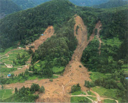 山崩れにより、道路や田畑が土砂で埋まってしまいました。