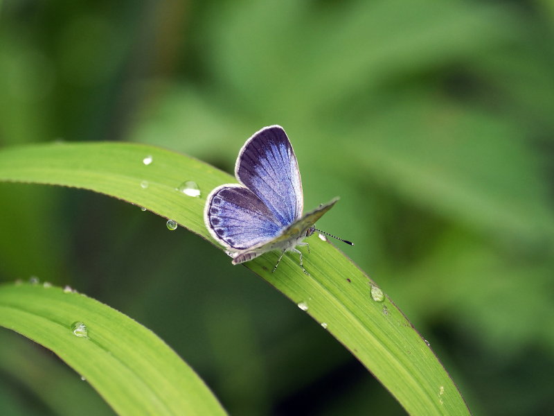 これもまたどこでも見られるシジミチョウで名前もヤマトシジミ!青を太い 黒縁で締めてなかなかのデザインです、♀は時々黒地に青斑点が現れます。